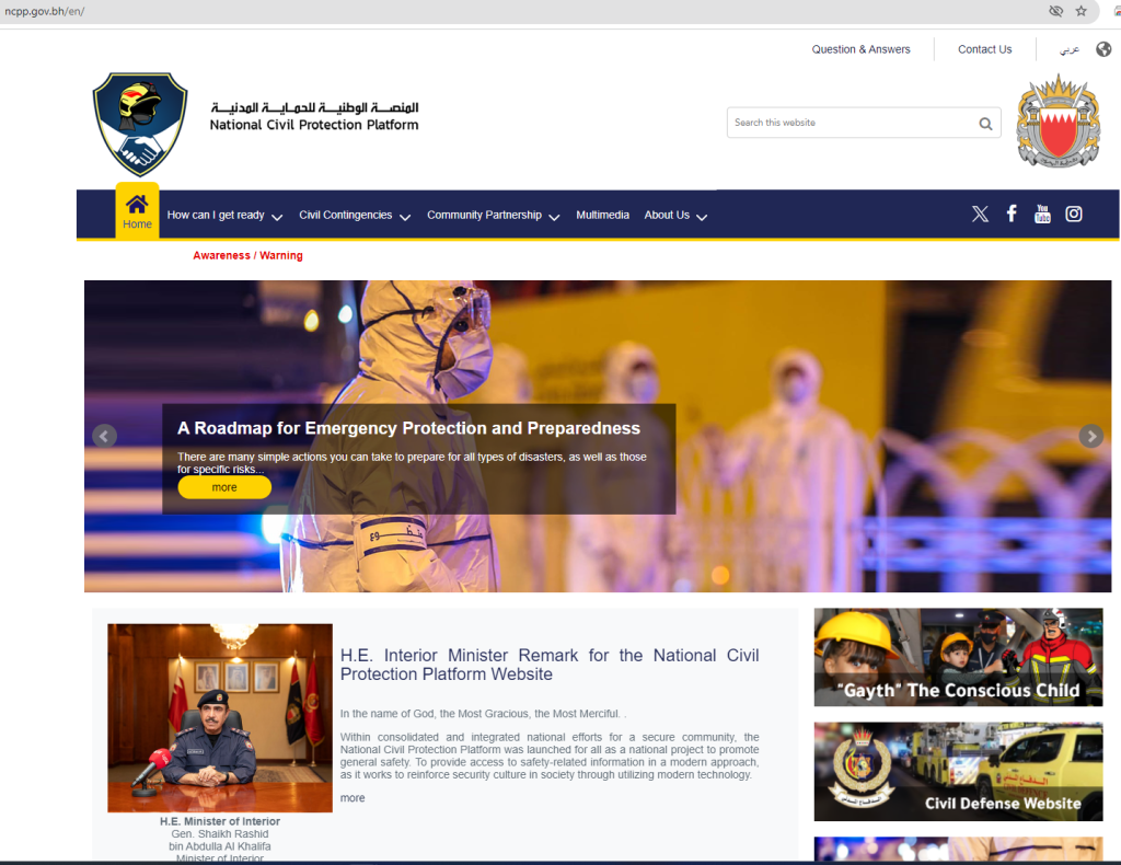 The Ministry of Interior (MOI) has spearheaded the launch of the National Civil Protection Platform, an integrated national initiative that enhances public safety. This platform delivers timely, relevant information to citizens and residents, strengthening the crisis management culture across Bahrain. By leveraging modern technologies, the platform fosters a proactive and informed society, prepared to respond to any crisis or disaster.