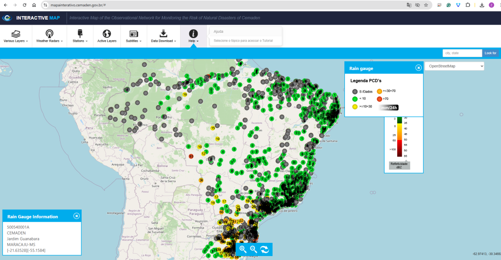 3. We also note that the data from the natural disaster monitoring network available via the Interactive Map on the Cemaden website have not undergone any processing; therefore, there may be inconsistencies in this data.