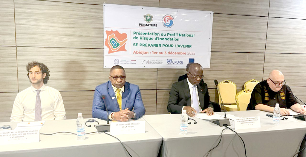 Abidjan, le 3 décembre 2025 – Afin de prévenir et de réduire les impacts des catastrophes sur la croissance économique et le développement national, la Côte d’Ivoire s’est dotée d’un Profil National du Risque d’Inondation. La présentation officielle de cet outil stratégique d’aide à la décision s’est tenue lors d’un atelier organisé du 1er au 3 décembre 2025 à Abidjan-Marcory, autour du thème : « Évaluation du risque à l’action précoce : renforcer la résilience aux inondations en Afrique de l’Ouest ».