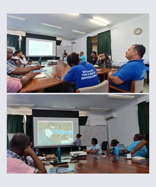 On the 24th of January 2023, the Public Utilities Corporation hosted a meeting discussing operationalisation of their Dam Break Emergency Plan for La Gogue. In attendance was the P.U.C La Sogue Project team and consultants, the Disaster Risk Management Division, Seychelles Fire and Rescue Services Agency, Seychelles Public Transportation Corporation, Red cross and the Environment Assessment and Permit Section.