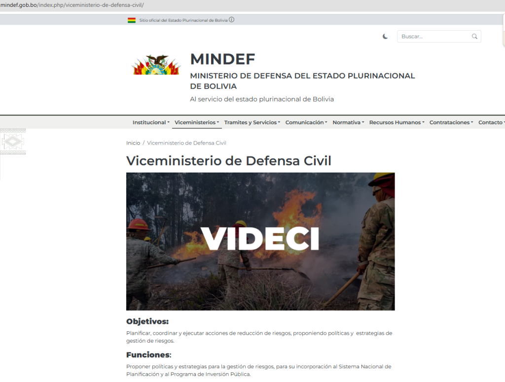 From the Risk, Emergency and Disaster Management Unit in coordination with the Vice Ministry of Civil Defense, ministerial programs and the