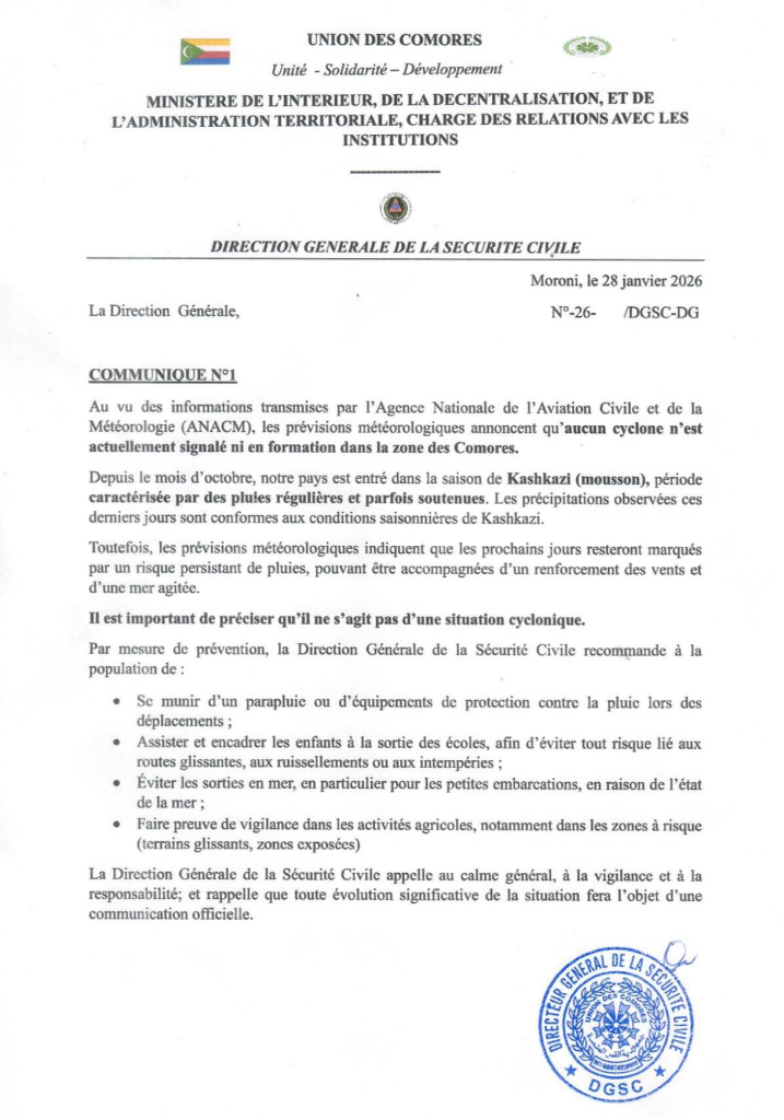 Direction Générale de la Sécurité Civile – Comores/ Directorate Civil Security