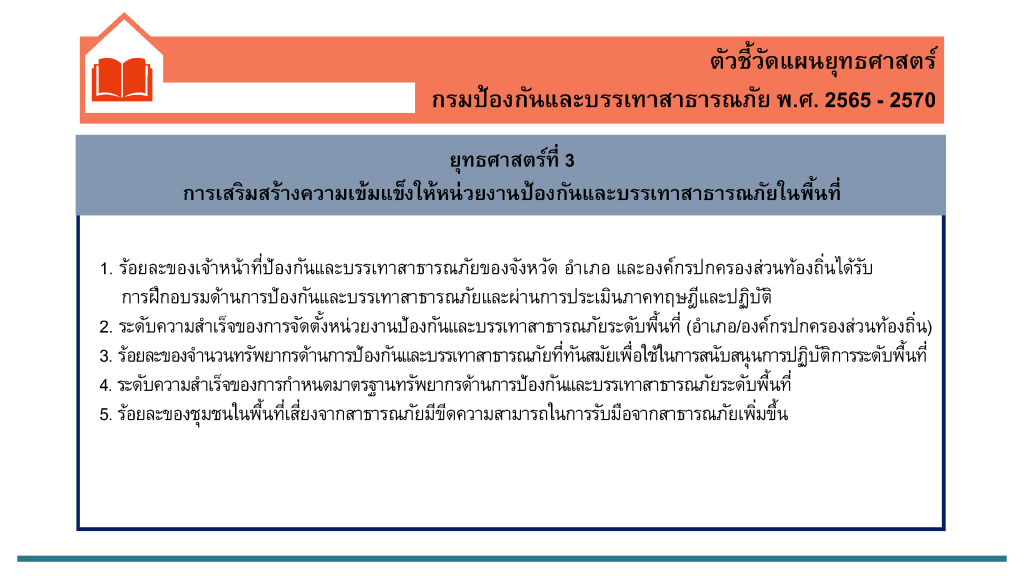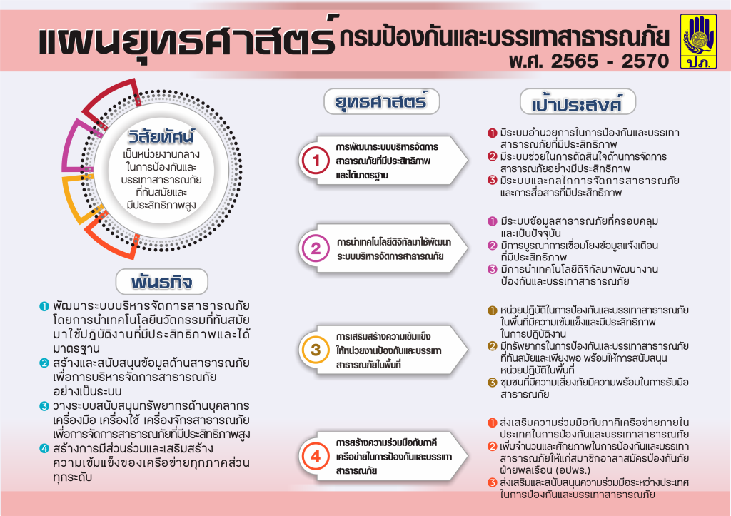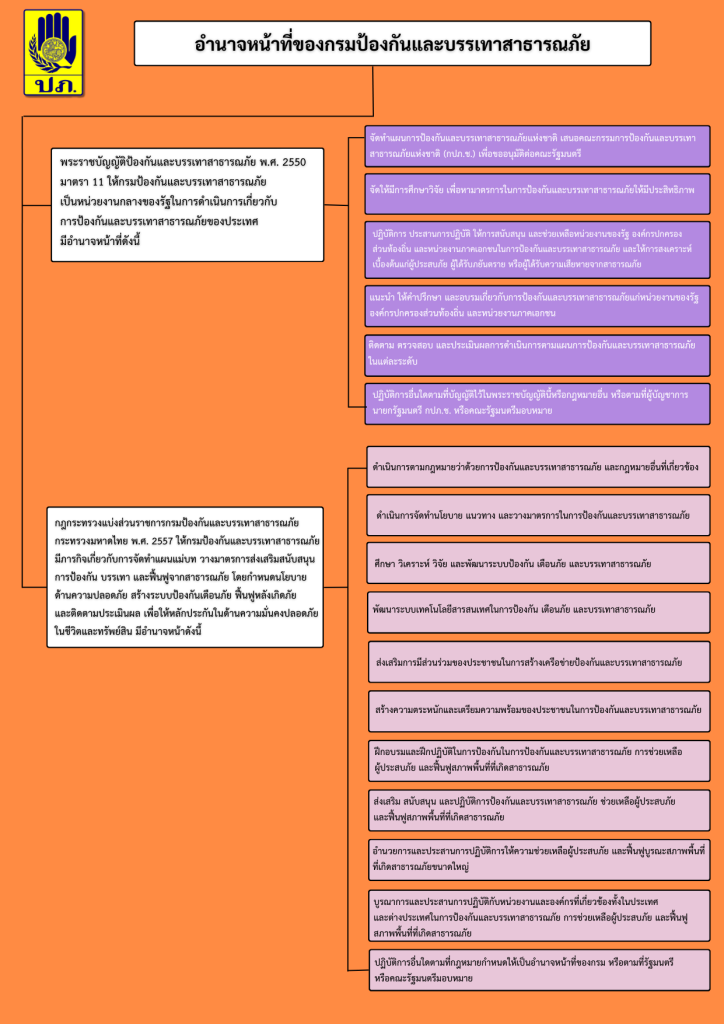 DDPM was established on the 3rd of October 2002 as an agency under Ministry of Interior (MOI) to handle disaster management responsibilities. As disaster situations in Thailand got worse due to population increase, urbanization and impact of climate change, the establishment of DDPM is to have a better and more effective mechanism to prevent disaster damage and loss and to mitigate calamity due to man-made and natural disasters.