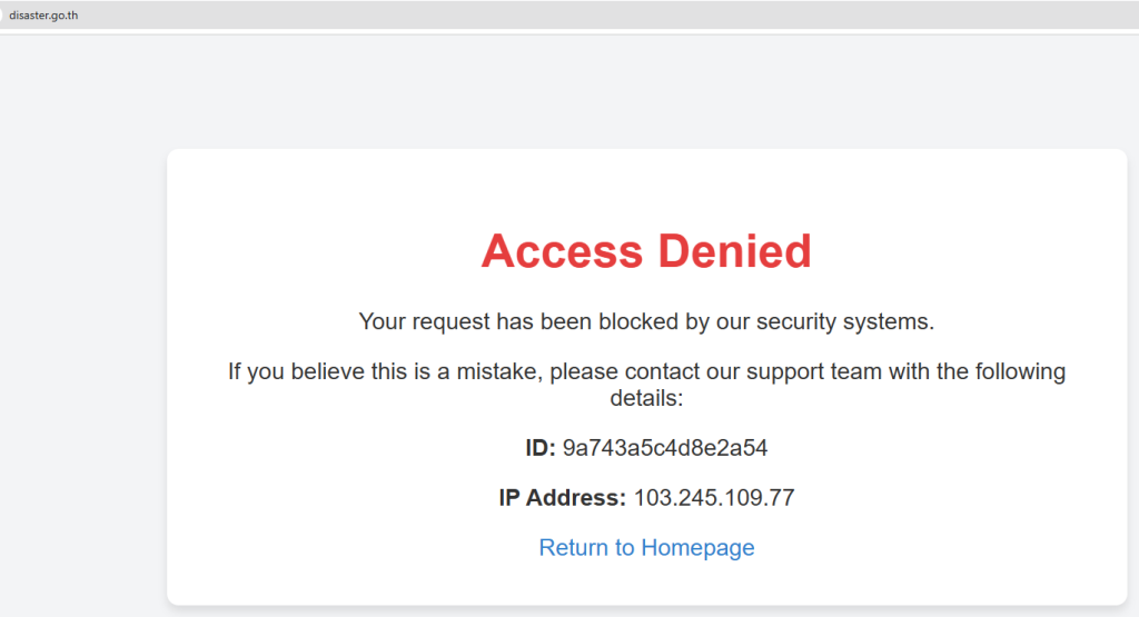 It is quite regrettable that the Department of Disaster Prevention and Mitigation (DDPM) of the Ministry of Interior of Thailand has blocked access to its website, https://www.disaster.go.th (????). At the same time, Thailand hosts the Asian Disaster Preparedness Center (ADPC) https://www.adpc.net and the Asian Institute of Technology https://ait.ac.th !!!!!!!